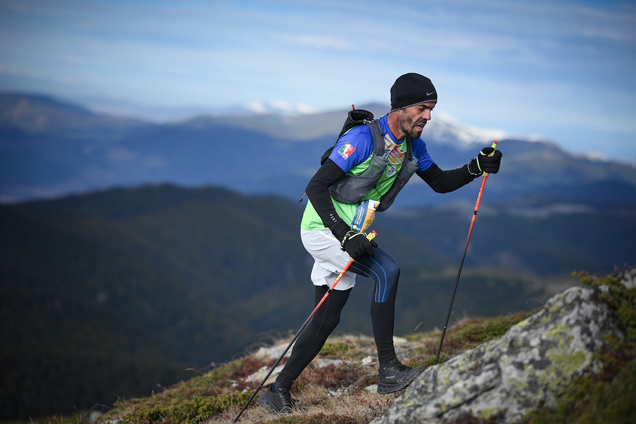 True to the weather forecast, today’s SKY discipline was also true to its name, sunny and clear blue overlooking the revised 26 km course with 1,900m vertical climb giving athletes a full-on experience, this time including views of the Balkans.